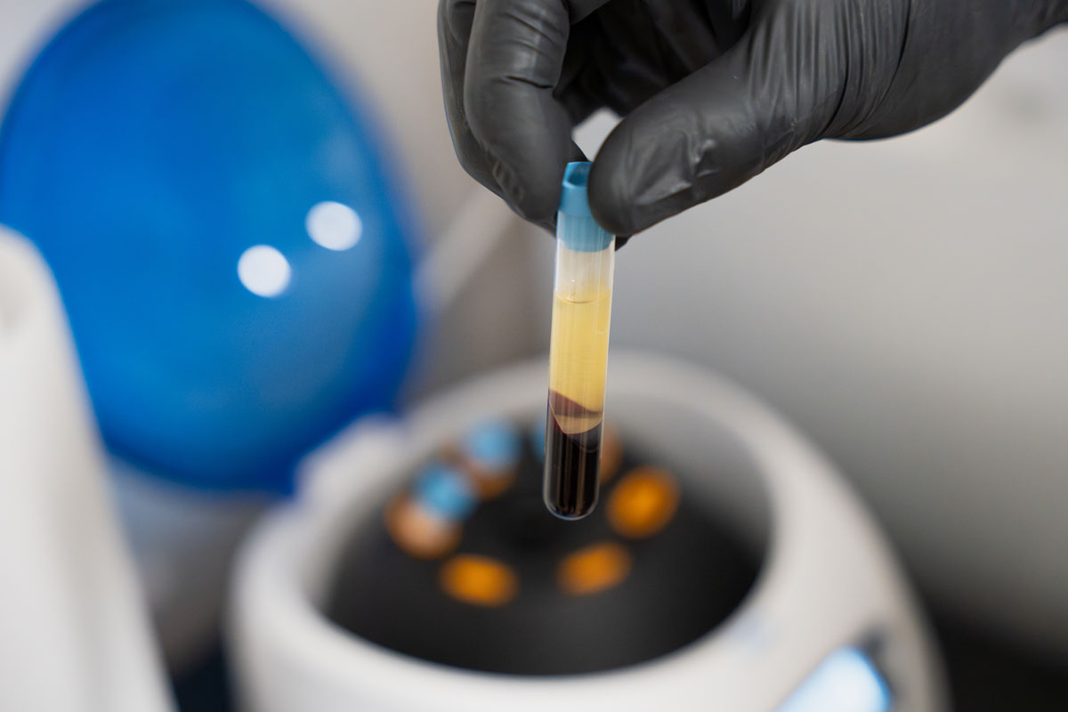 Platelet-rich plasma (PRP) is a concentration of platelets derived from a small sample of the patient's own blood. The blood is drawn from the patient's arm and then placed into a centrifuge machine, which spins the blood at a high speed. This process separates the plasma, white blood cells, and red blood cells from the platelets, creating a concentration of platelets that is much higher than what is normally found in the blood.